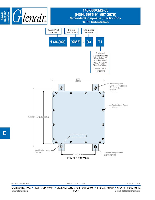 Glenair 140-060XMS-03 Submersible Grounded Composite Junction Box (NSN: 5975-01-557-2679)